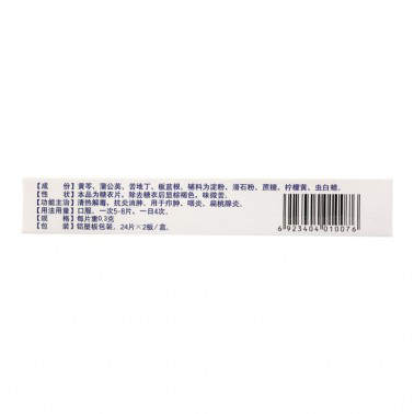 | ³É·Ö | ÆÑ¹«Ó¢¡¢»ÆÜË¡¢¿àµØ¶¡¡¢°åÀ¶¸ù¡£¸¨ÁÏΪ£ºµí·Û¡¢»¬Ê¯·Û¡¢ÕáÌÇ¡¢ÄûÃʻơ¢³æ°×À¯¡£ |