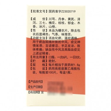 ¹¦ÄÜÖ÷ÖΣº»îѪ»¯ðö,ξͨÂç¡£ÓÃÓÚðöѪ×èÂçËùÖµÄÖз磬֢¼ûÉñÇé´ôÖÍ¡¢ÑÔÓïåÀɬ¡¢ÊÖ×ã·¢Á¹¡¢Ö«ÌåÌÛÍ´£»È±ÑªÐÔÖз缰