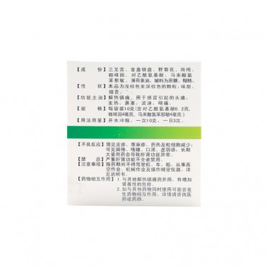 | ¹¦ÄÜÖ÷ÖÎ | ½âÈÈÕòÍ´¡£ÓÃÓÚ¸ÐðÒýÆðµÄÍ·Í´£¬·¢ÈÈ£¬±ÇÈû£¬Á÷Ì飬ÑÊÍ´¡£ |