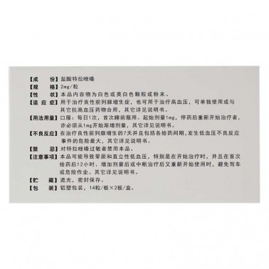 | ×¢ÒâÊÂÏî | 1.ǰÁÐÏÙ°© ǰÁÐÏÙ°©ºÍBPHÒýÆðÐí¶àÏàͬµÄÖ¢×´¡£ÕâÁ½ÖÖ¼²²¡³£³£Í¬Ê±´æÔÚ¡£ËùÒÔÈÏΪ»¼ÓÐBPHµÄ²¡ÈËÓ¦ÔÚÓÃÑÎËáÌØÀßòàºÖÎÁÆÖ®Ç°½øÐмì²éÒÔÅųýǰÁÐÏÙ°©´æÔڵĿÉÄÜÐÔ¡£2.Ö±Á¢ÐÔµÍѪѹ ¾¡¹ÜÔÎØÊÊÇÌØÀßòàº×îÑÏÖØµÄÖ±Á¢ÐÔ×÷Ó㬵«¸ü³£¼ûÆäËûµÍѪѹ֢״£¬ÈçÍ·ÔΡ¢Ðļ²¢ÇÒÔÚ¸ß |