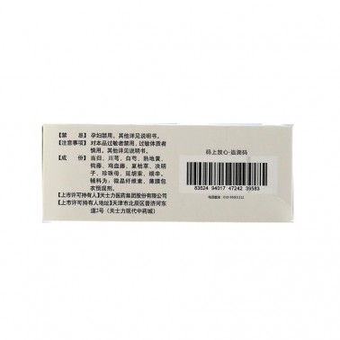 | ³É·Ö | µ±¹é¡¢´¨Üº¡¢°×ÉÖ¡¢ÊìµØ»Æ¡¢¹³ÌÙ¡¢¼¦ÑªÌÙ¡¢ÏĿݲݡ¢¾öÃ÷×Ó¡¢ÕäÖéĸ¡¢ÑÓºúË÷¡¢Ï¸ÐÁ¡£¸¨ÁÏΪ£ºÎ¢¾§ÏËÎ¬ËØ¡¢±¡Ä¤°üÒÂÔ¤»ì¼Á¡£ |