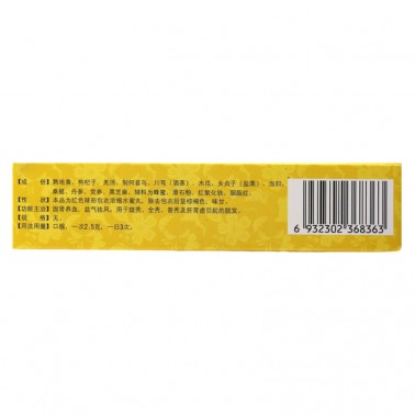 | ³É·Ö | ÊìµØ»Æ¡¢èÛè½×Ó¡¢Ç¼»î¡¢ÖƺÎÊ×ÎÚ¡¢´¨Üº(¾ÆÕô)¡¢Ä¾¹Ï¡¢Å®Õê×Ó(ÑÎÕô)¡¢µ±¹é¡¢É£é©¡¢µ¤²Î¡¢µ³²Î¡¢ºÚÖ¥Âé¡£¸¨ÁÏΪºìÑõ»¯Ìú¡¢»¬Ê¯·Û¡¢ |